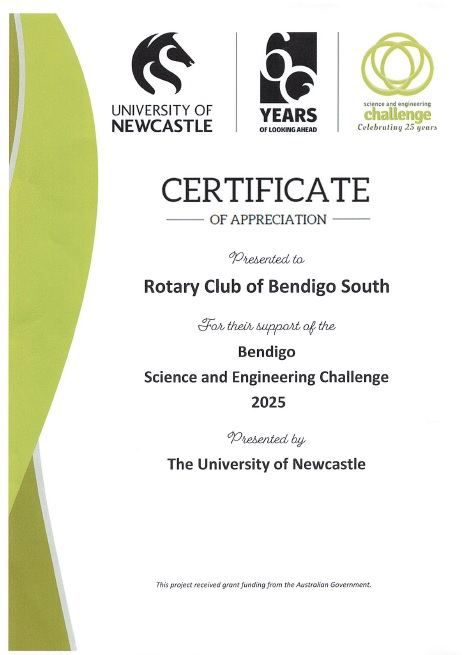 For over 15 years, The Rotary Club of Bendigo South has conducted the Science and Engineering Challenge competition for Central Victoria. This event takes place in partnership with Newcastle University.